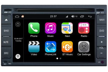 Android 7.1 OS Double Din Navigation head unit For Hyundai. The same size, harness, and connectors as the factory radio, totally plug-and-play, no cutting wires. Supports factory steering wheel controls, wifi, mirror-link, SD/USB music/video, iPod, DVD playback, Bluetooth phone call and Bluetooth music, backup camera(optional), DVR(optional), TV tuner(optional), AUX port and Apple CarPlay(optional). Support Google Maps and preload offline maps for your country on the map card so that you can use the navigation when there is no internet connection.