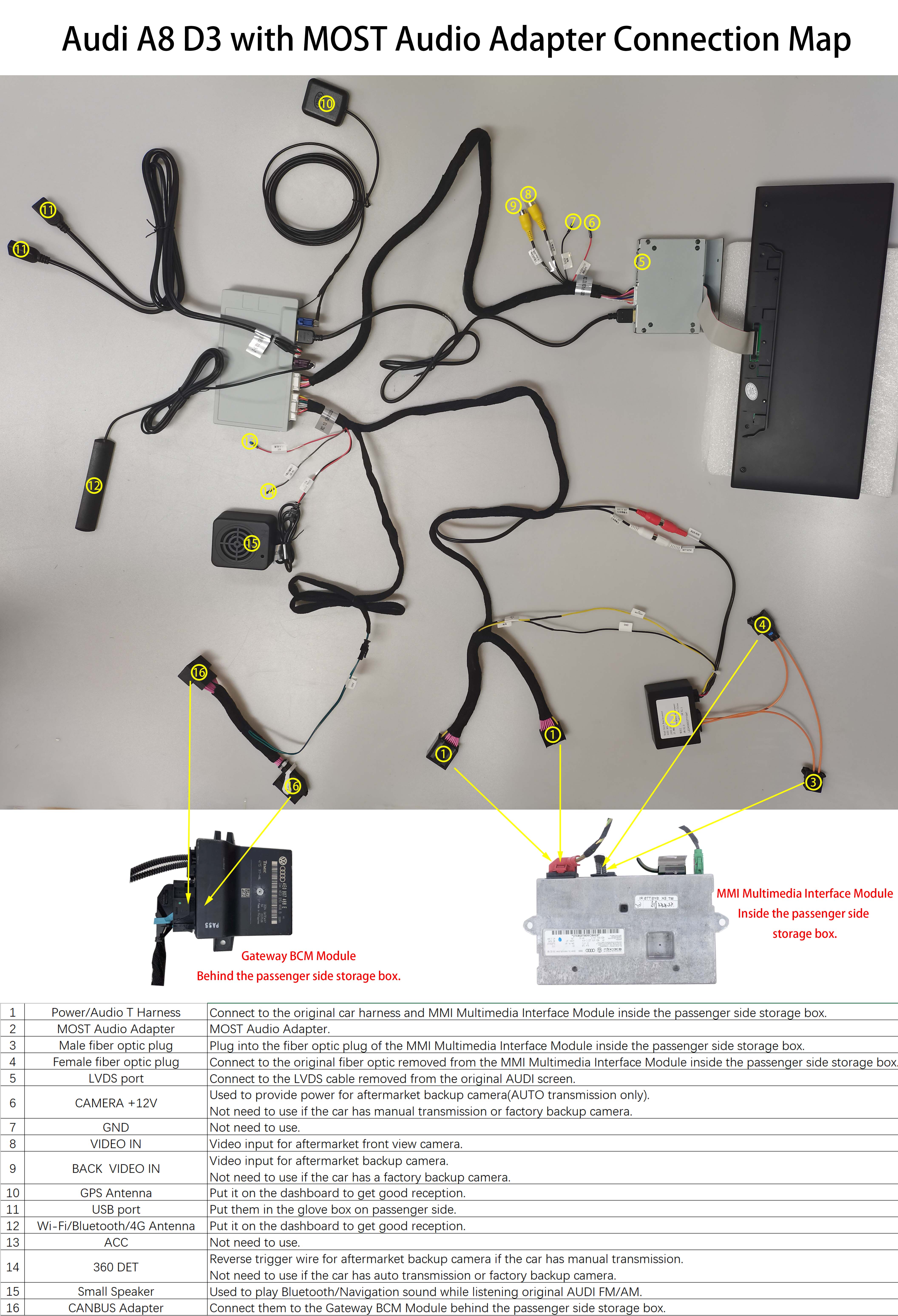 Audi A8 D3 with MOST Audio Adapter Connection Map