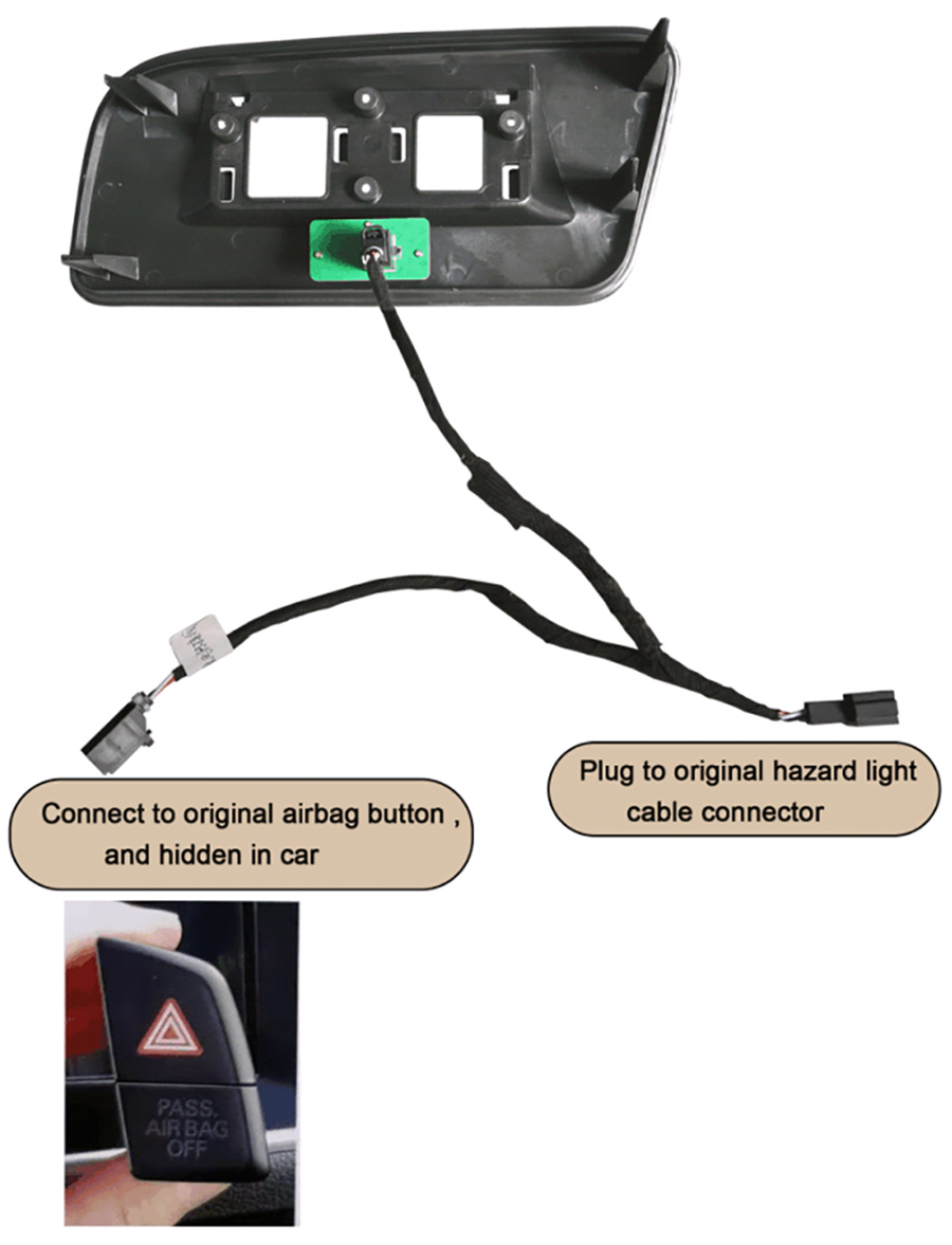 But if the factory radio fascia has two buttons(hazard warning lamp button and airbag button) as shown in the right picture below. We will include an adapter harness to remain the airbag button, but you need to hide it in the car and may not see it.