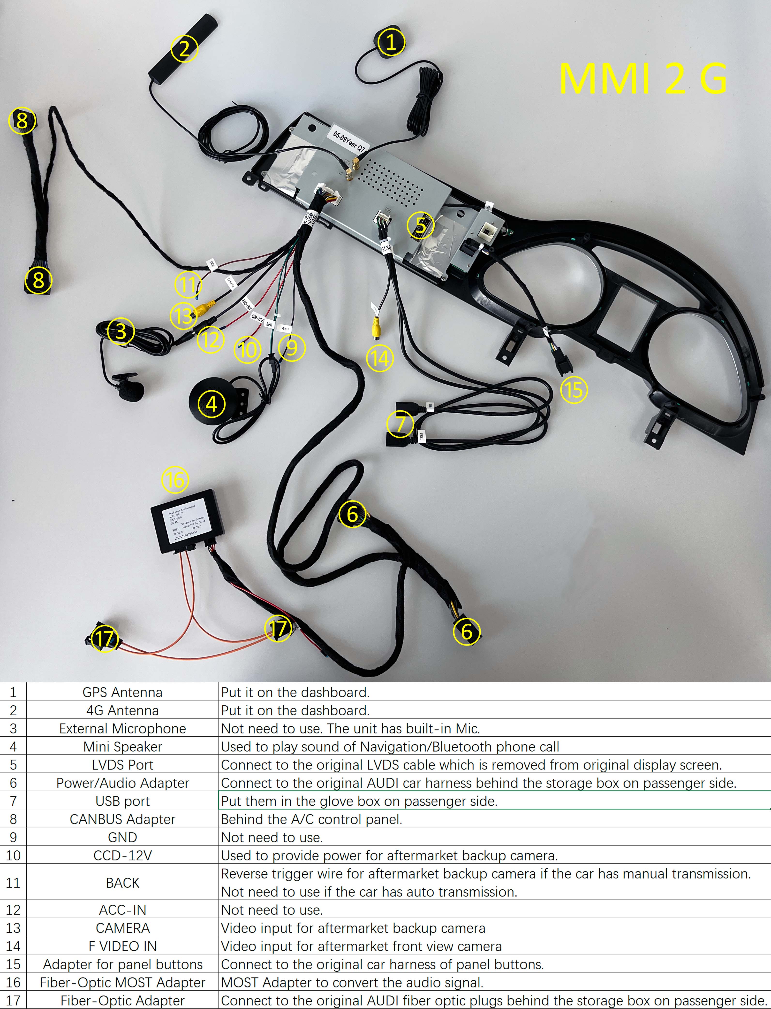 2. If your car has the AUX(External audio input) or AMI audio option, you don't need the Fiber-Optic MOST Adapter.