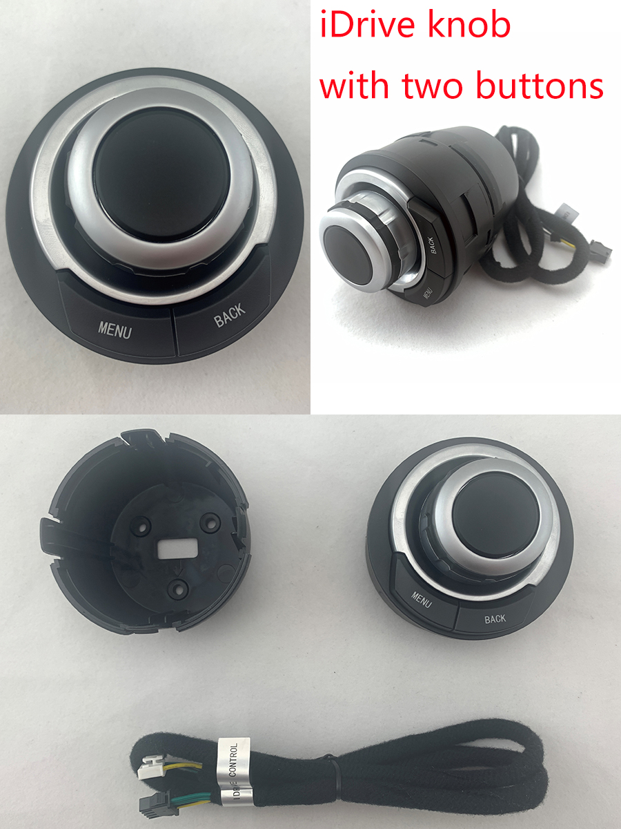 If your car has a factory screen and iDrive knob, as shown in the left photo above, you can control the menus of a new interface via the factory iDrive knob.