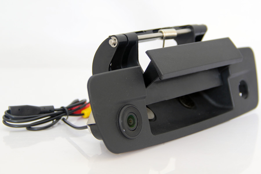 This is the camera of choice for Dodge Ram owners. It is a Sony CCD camera embedded into a custom tailgate handle camera explicitly designed for use on the Dodge Ram pickup truck. The camera completely replaces the factory tailgate handle giving a custom camera install without having to drill any holes or modify the truck's tailgate.