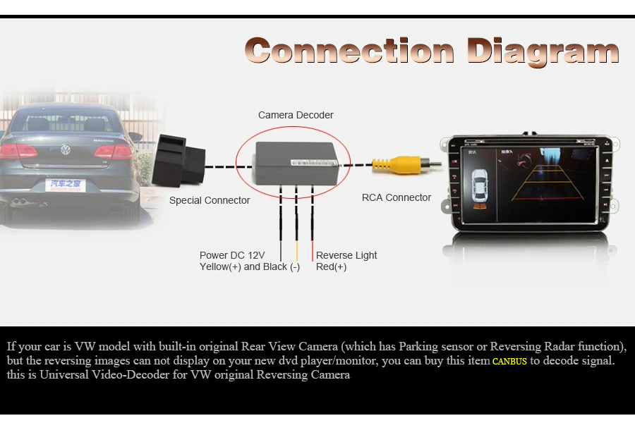 3. Only For VW Volkswagen Vehicles Fitted with head units of RNS510 (MFD3), RNS315, Columbus or RCD510 (RCD510 with 26 Pin Connector Only).